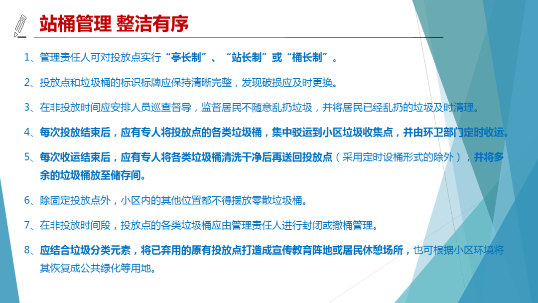 自習近平總書記2016年11月21日提出要建立生活垃圾分類制度以來,46個重點城市的垃圾分類工作取得了初步成效,其他城市的垃圾分類工作也在逐步推進,但由于受新冠疫情等影響,總體進展情況低于預期。垃圾分類是一項涉及面很廣的系統(tǒng)工程,其中小區(qū)投放環(huán)節(jié)是決定成敗的核心環(huán)節(jié),而“簡便易行、合理布局”是投放設施設置的基本準則。如何按照這個準則來規(guī)范管理人職責和行為、優(yōu)化投放點設置和形式、實施居民區(qū)宣傳和督導?本期固廢觀察將與你一一分享。