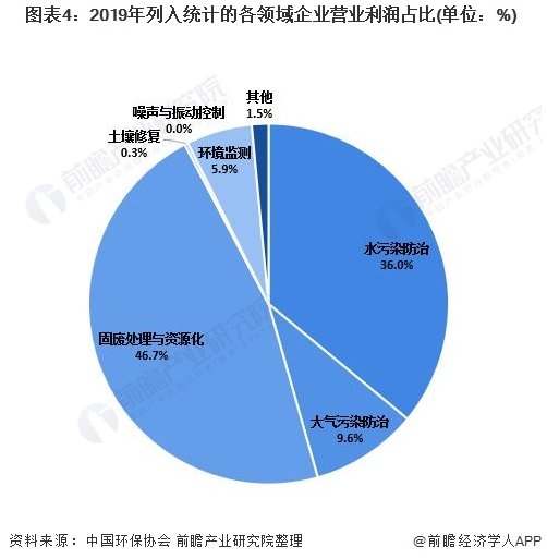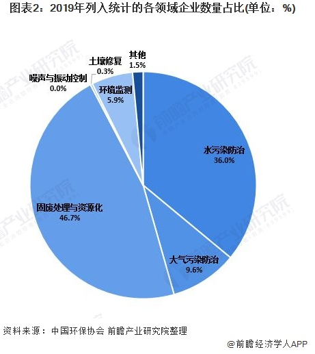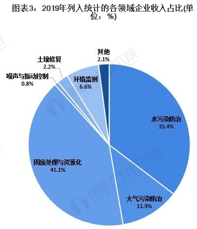 在我國環(huán)保產業(yè)企業(yè)中,水污染防治、環(huán)境監(jiān)測領域企業(yè)數(shù)量占比較高;水污染防治、固廢處置與資源化、大氣污染防治3個領域企業(yè)的營業(yè)收入占比居前列,3個領域企業(yè)營業(yè)收入之和占比高達88.4%。