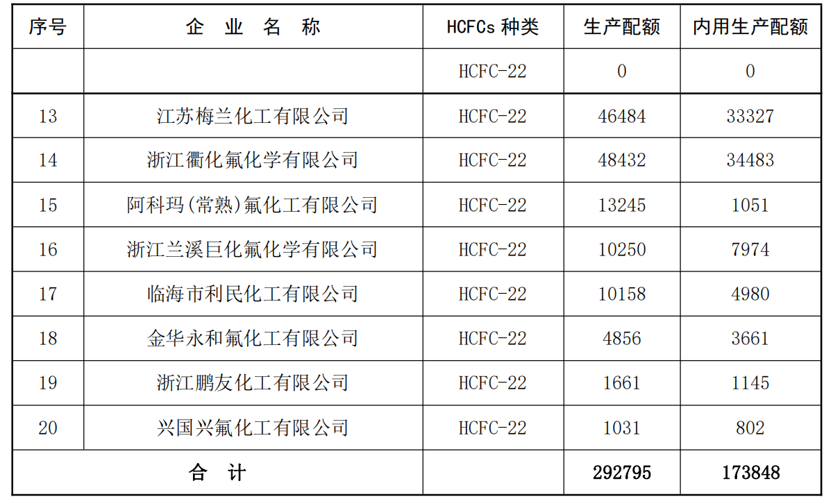 根據(jù)《中華人民共和國大氣污染防治法》和《消耗臭氧層物質(zhì)管理?xiàng)l例》等有關(guān)規(guī)定,現(xiàn)核發(fā)浙江三美化工股份有限公司等20家單位2021年度含氫氯氟烴生產(chǎn)配額,核發(fā)珠海格力電器股份有限公司等46家單位2021年度含氫氯氟烴使用配額,核發(fā)利安隆博華(天津)醫(yī)藥化學(xué)有限公司等8家單位2021年度四氯化碳使用配額(見附件1、2和3)。