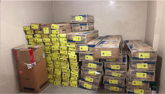 封箱并張貼了警示標(biāo)識(shí)的有害垃圾