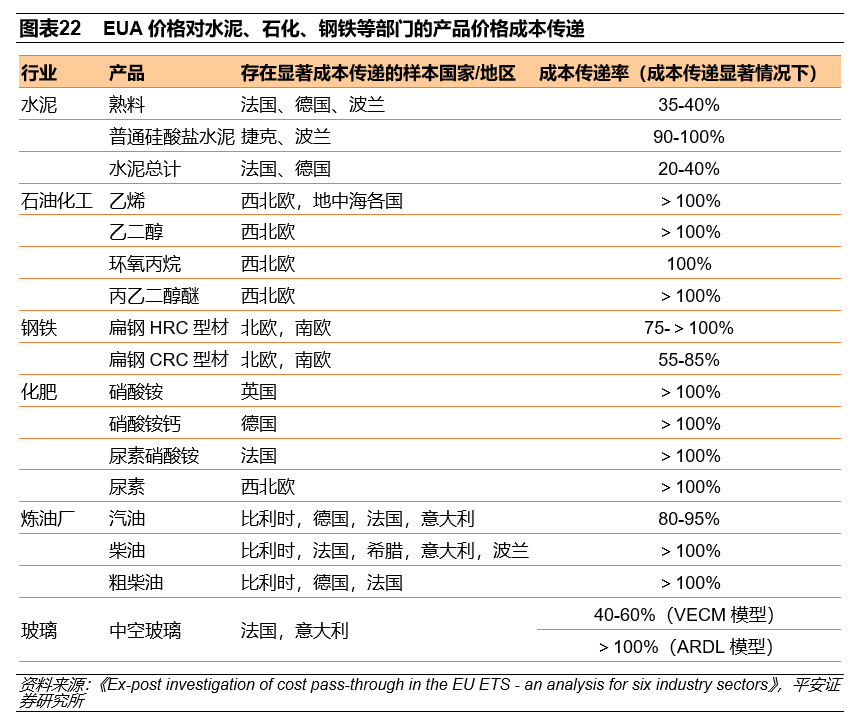 電力、鋼鐵、石化、化工等行業(yè)在一定程度上可以將碳成本轉(zhuǎn)嫁給消費者,提升的產(chǎn)品價格可能對企業(yè)業(yè)績產(chǎn)生影響,但整體業(yè)績表現(xiàn)與企業(yè)產(chǎn)量、銷量有關(guān)。