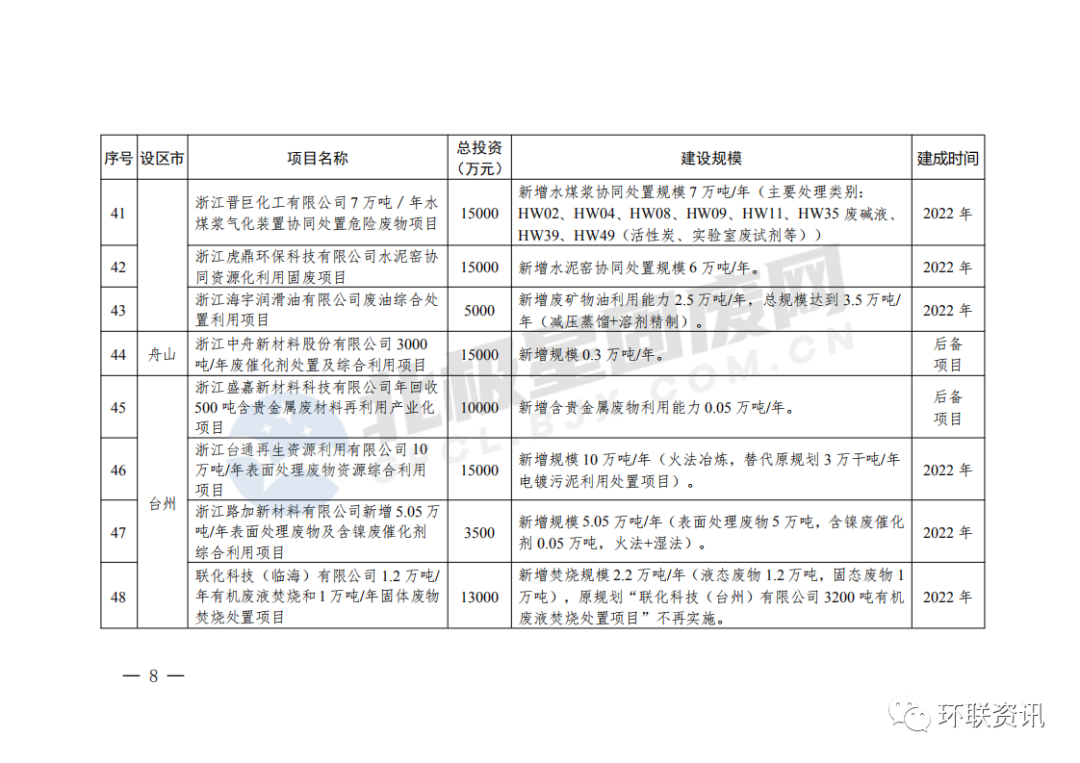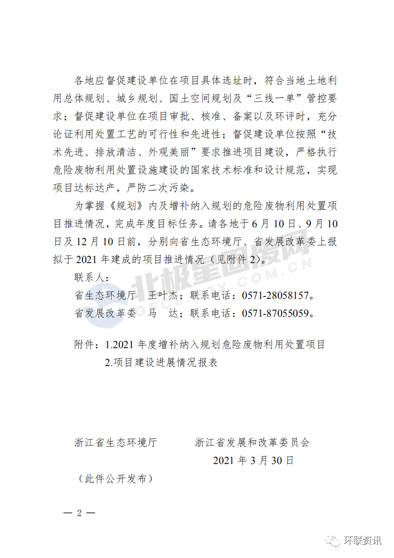 浙江省生態(tài)環(huán)境廳 浙江省發(fā)展和改革委員會(huì)關(guān)于發(fā)布2021年度增補(bǔ)納入規(guī)劃危險(xiǎn)廢物利用處置項(xiàng)目的通知各設(shè)區(qū)市生態(tài)環(huán)境局、發(fā)展改革委:為貫徹落實(shí)《中華人民共和國(guó)固體廢物污染環(huán)境防治法》,建設(shè)滿足當(dāng)?shù)匦枰睦锰幹迷O(shè)施,推動(dòng)形成“技術(shù)先進(jìn)、管理規(guī)范、能力富余、適度競(jìng)爭(zhēng)”的良性市場(chǎng)局面,根據(jù)各地上報(bào)項(xiàng)目,發(fā)布2021年度《浙江省危險(xiǎn)廢物利用處置設(shè)施建設(shè)規(guī)劃(2019-2022年)》(以下簡(jiǎn)稱《規(guī)劃》)增補(bǔ)及調(diào)整的危險(xiǎn)廢物利用處置項(xiàng)目清單。
