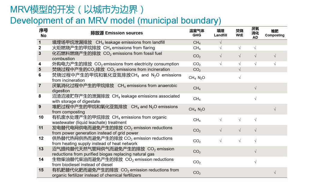 另外還有一部分很重要的內(nèi)容,我們會對這五個城市垃圾行業(yè)的溫室氣體排放去進行分析。首先我們建立一個基于城市的方法學(xué),在這個方法學(xué)的基礎(chǔ)上,我們會有一個對五個城市的基線研究,最終減排量也是會每年度的去做定期的核算。