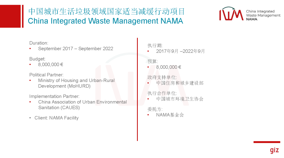 我們其實相對來說比較早,在2017年的時候,這個概念是在15年就提出來了,在2017年的時候拿到了那馬基金會的支持,基金會也是由德國、丹麥、歐盟以及英國四個國家共同成立的一個基金會,主要就是支持我們發(fā)展中國家在不同的領(lǐng)域探索我們是不是能夠更減排。我們這個項目中方的政府支持單位是住建部,很榮幸能夠得到部里的支持,中國的執(zhí)行合作伙伴是中環(huán)協(xié),項目執(zhí)行期是五年,今年是第四年,預(yù)計明年九月正式結(jié)束。我們現(xiàn)在有四年多的數(shù)據(jù)能跟大家分享一下,看看我們干了什么。