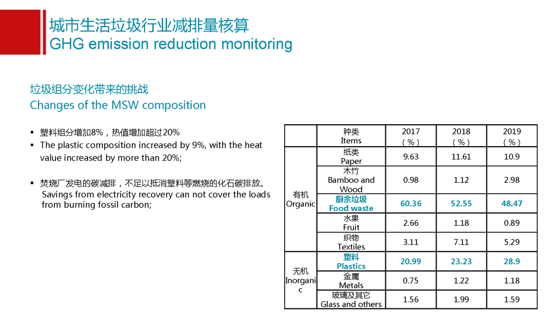 另外一點,我還想分享的是垃圾組分給我們整個垃圾行業(yè)帶來的挑戰(zhàn),很多時候會說整個事情的發(fā)展都是日新月異的,我們能夠看到我們垃圾的成分也有非常明顯的變化。