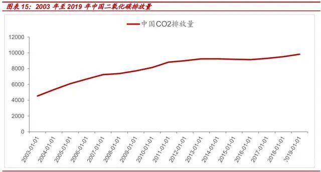 根據(jù)《世界能源統(tǒng)計(jì)年鑒 2020》數(shù)據(jù),我國 GDP 占全球比重達(dá)到 17%左右,能耗約占全球 24.27%,二氧化碳排放約占全球 28.76%,單位 GDP 碳排放強(qiáng)度約為世界平均水平的 3 倍。根據(jù)聯(lián)合國《世界人口展 望:2015 年修訂版》預(yù)測(cè),今后較長時(shí)期內(nèi)世界人口將保持上升趨勢(shì), 人口總量將從 2015 年的 73 億上升到 2030 年的 85 億,2050 年接近 100 億。從這個(gè)角度來看,作為人口與經(jīng)濟(jì)大國,我國擁有全球 19%左右比 重的人口創(chuàng)造全球 17%的 GDP,但排碳強(qiáng)度屬于全球較高水平,2020 年實(shí)現(xiàn)碳達(dá)峰的任務(wù)較為艱巨。這或進(jìn)一步倒逼未來 9 年居民部門的生 活方式及企業(yè)部門的生產(chǎn)方式面臨較大的“變革”。