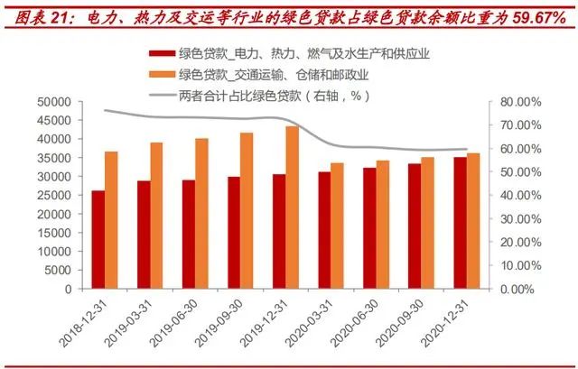 我國綠色金融體系以間接融資為主。根據(jù)中國人民銀行披露,截至 2020 年底,本外幣綠色貸款余額約為 12 萬億元,同比增速為 16%。其中, 電力、熱力及交運(yùn)等行業(yè)的綠色貸款占綠色貸款余額比重為 59.67%。我國發(fā)展綠色金融以來,致力于建立起校正環(huán)境污染和溫室效應(yīng)等負(fù)外 部性的經(jīng)濟(jì)機(jī)制,對(duì)企業(yè)減輕環(huán)境耗損的經(jīng)營行為給予相應(yīng)的激勵(lì),最 終阻斷企業(yè)的環(huán)境套利行為。我們預(yù)計(jì),按照 16%的增速發(fā)展速度保持 不變,綠色金融規(guī)模在未來五年達(dá)到 100 萬億。