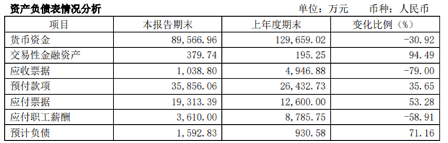資產(chǎn)負(fù)債表顯示,應(yīng)收票據(jù)下降偏多,相較上年末下降79.00%,原因主要是承兌匯票到期兌付;交易性金融資金增長(zhǎng)較高,相較上年末增長(zhǎng)94.49%,原因是子公司期貨投資盈利;預(yù)計(jì)負(fù)債也較上年末增長(zhǎng)71.16%,公司主要用于預(yù)提的大修費(fèi)等。同時(shí),貨幣資金變動(dòng)相較上年末下降30.92%,主要是用銀行存款償還部分綠色公司債券;預(yù)付款項(xiàng)變動(dòng)相較上年末增長(zhǎng)35.65%,主要是預(yù)付材料及設(shè)備款增加。