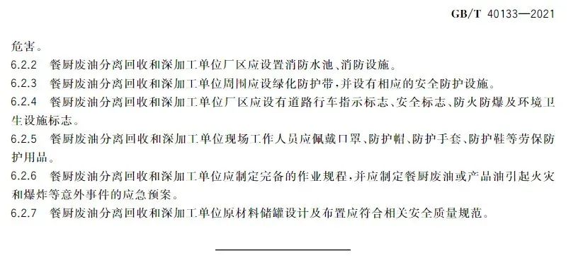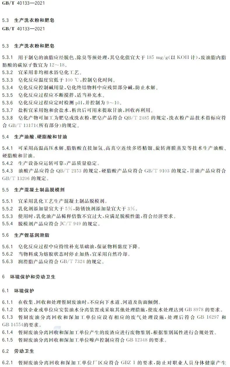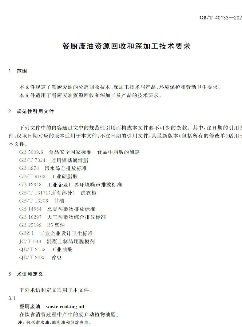 該國標(biāo)對餐廚廢油的分離回收技術(shù)、深加工技術(shù)與產(chǎn)品及環(huán)境保護(hù)和勞動衛(wèi)生做出規(guī)范要求,是我國第一項餐廚廢油回收和深加工技術(shù)的國家標(biāo)準(zhǔn),改觀了餐廚廢油資源回收和深加工處于有技術(shù)、無標(biāo)準(zhǔn)的狀態(tài),對于餐廚廢油資源回收和深加工及產(chǎn)品具有深遠(yuǎn)的指導(dǎo)性意義。