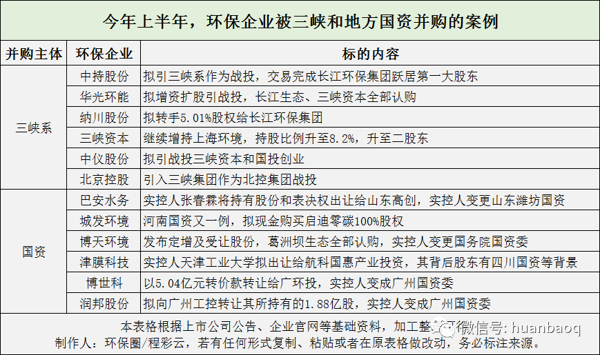圖一:6月環(huán)保行業(yè)收并購(gòu)案例比較著名的,業(yè)內(nèi)反響比較大的事件有:一,有著行業(yè)環(huán)?!熬逕o(wú)霸”之稱(chēng)三峽系,這邊忙著與北控達(dá)成戰(zhàn)略投資,那邊增持上海環(huán)境,還順帶投資了管網(wǎng)修復(fù)企業(yè)中儀股份,繼續(xù)“一統(tǒng)江湖”,擴(kuò)大自己“朋友圈”。