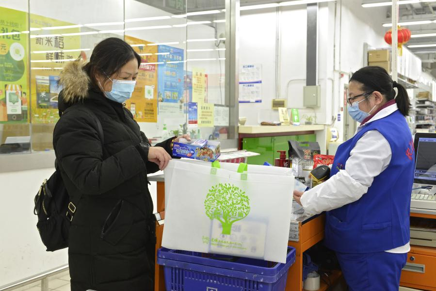 顧客正在使用無紡布購(gòu)物袋 | 新華網(wǎng)