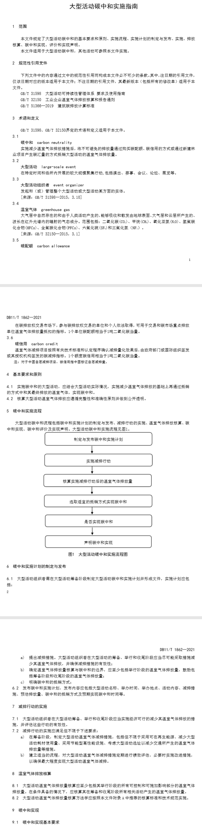 本文件規(guī)定了大型活動碳中和的基本要求和原則、實施流程、實施計劃的制定與發(fā)布、實施、排放核算、碳中和實現(xiàn)、評價和實現(xiàn)聲明。
