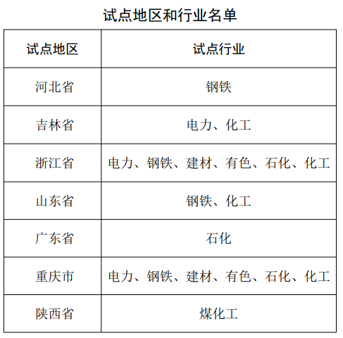 試點(diǎn)行業(yè)為電力、鋼鐵、建材、有色、石化和化工等重點(diǎn)行業(yè),試點(diǎn)地區(qū)根據(jù)各地實(shí)際選取試點(diǎn)行業(yè)和建設(shè)項(xiàng)目(詳細(xì)名單見附件1)。除上述重點(diǎn)行業(yè)外,試點(diǎn)地區(qū)還可根據(jù)本地碳排放源構(gòu)成特點(diǎn),結(jié)合地區(qū)碳達(dá)峰行動方案和路徑安排,同步開展其他碳排放強(qiáng)度高的行業(yè)試點(diǎn)。