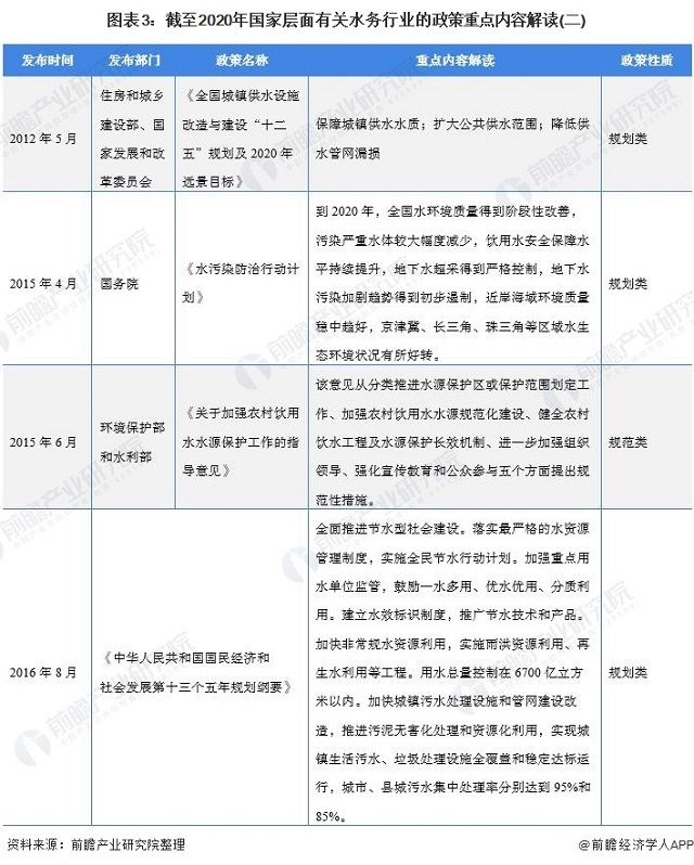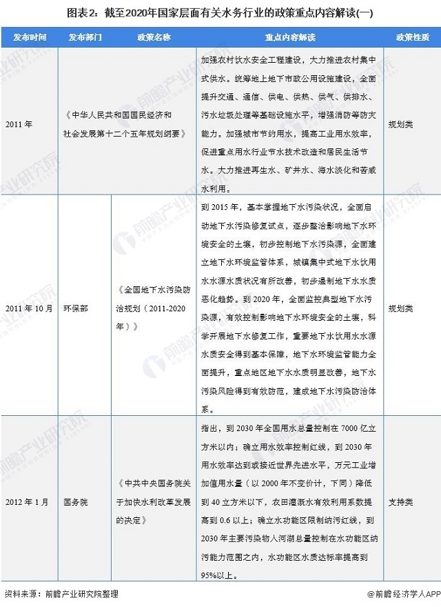 圖表2:截至2020年國家層面有關(guān)水務(wù)行業(yè)的政策重點內(nèi)容解讀(一)