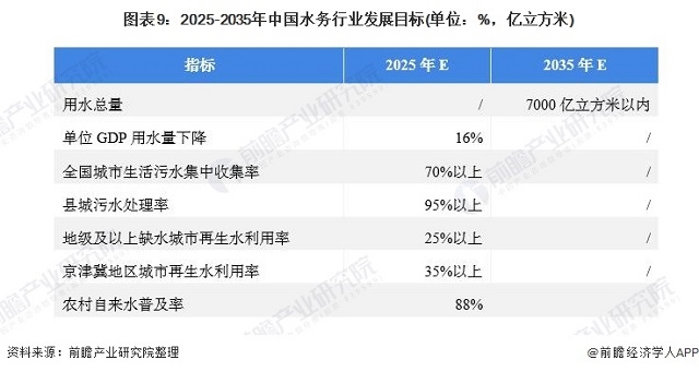 圖表9:2025-2035年中國水務(wù)行業(yè)發(fā)展目標(biāo)(單位:%,億立方米)