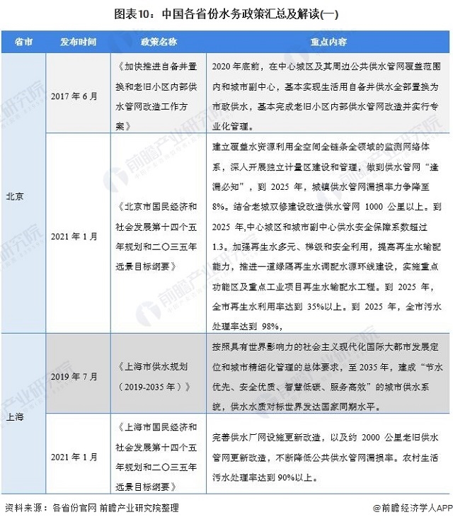 圖表10:中國各省份水務(wù)政策匯總及解讀(一)
