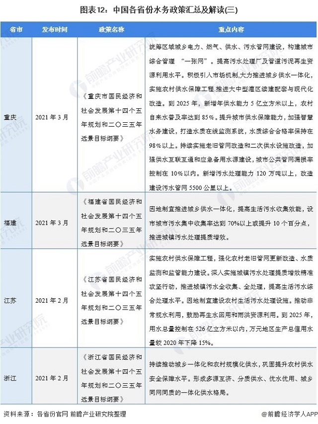 圖表12:中國各省份水務(wù)政策匯總及解讀(三)