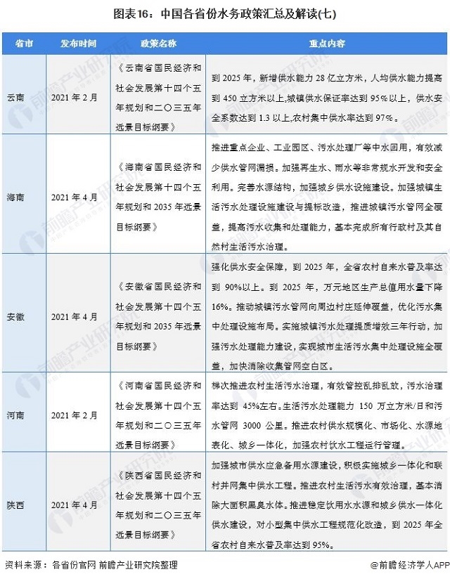 圖表16:中國各省份水務(wù)政策匯總及解讀(七)