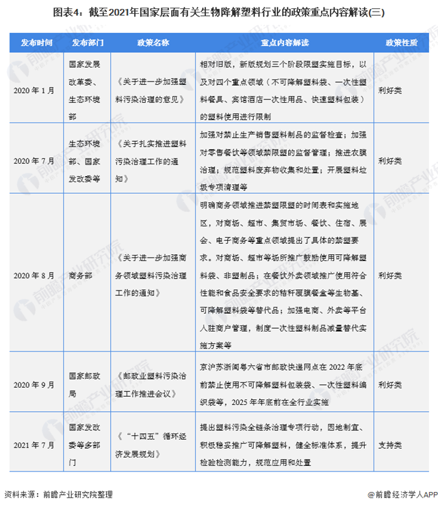 ——國家層面生物降解塑料行業(yè)政策匯總