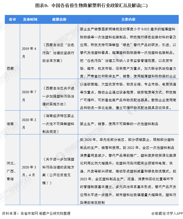 ——31省市生物降解塑料行業(yè)發(fā)展目標解讀