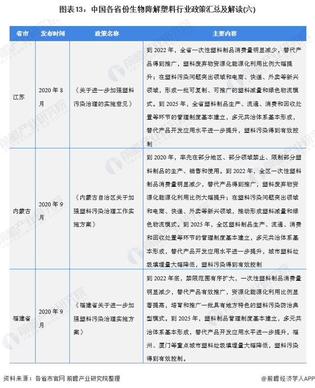——31省市生物降解塑料行業(yè)政策匯總