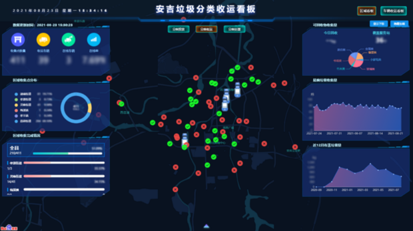 以垃圾分類為視角,安吉借助信息化手段對環(huán)衛(wèi)保潔、易腐垃圾、可回收物、有害垃圾、其他垃圾、特殊垃圾等各項運行數(shù)據(jù)進行精細梳理和高效整合,消除信息孤島、打造數(shù)據(jù)互聯(lián)互通,彌補了針對垃圾分類信息化綜合監(jiān)管的缺位。通過搭建便捷高效的垃圾分類智慧監(jiān)管平臺,監(jiān)管人員可以快速把握垃圾分類工作全鏈條關鍵數(shù)據(jù),實現(xiàn)科學研判,提升監(jiān)管、應急、考核、服務、決策效率與能力,讓垃圾分類管理工作更高效、更精準、更智慧。