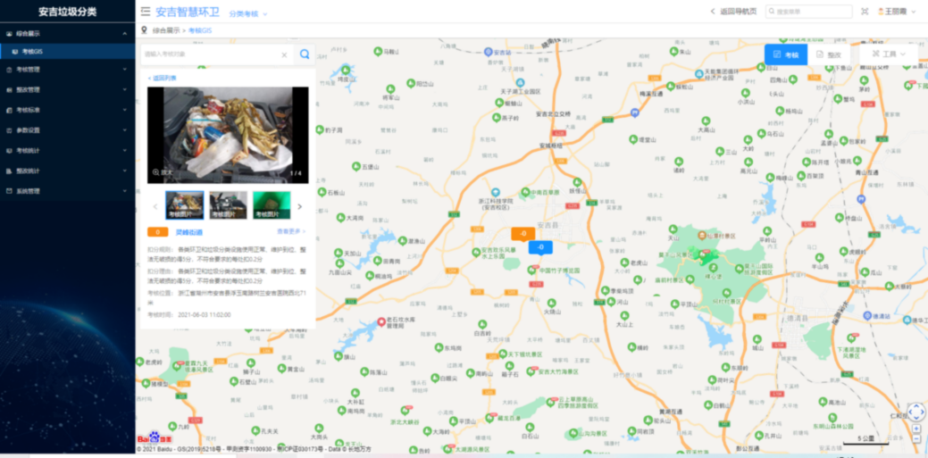 安吉縣垃圾分類智慧監(jiān)管平臺為安吉提供了一套科學高效的考核工具,有效監(jiān)督考核各街道、單位分類質量,實現(xiàn)定向指導,促進全區(qū)分類質量全面提升。
