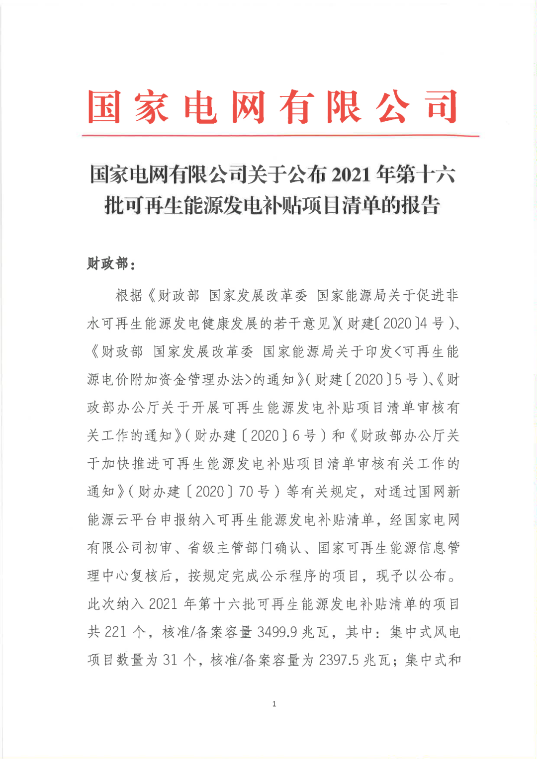 關(guān)于公布2021年第十六批可再生能源發(fā)電補(bǔ)貼項(xiàng)目清單的公告