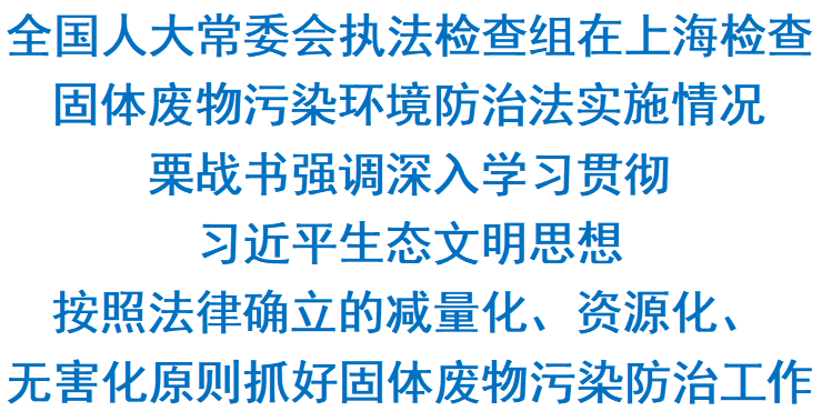 中共中央政治局常委、全國(guó)人大常委會(huì)委員長(zhǎng)栗戰(zhàn)書9月12日至14日率全國(guó)人大常委會(huì)執(zhí)法檢查組在上海檢查固體廢物污染環(huán)境防治法實(shí)施情況。他強(qiáng)調(diào),要深入學(xué)習(xí)貫徹習(xí)近平生態(tài)文明思想,按照法律確立的減量化、資源化、無(wú)害化原則抓好固體廢物污染防治工作。
