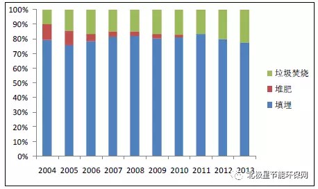 垃圾焚燒可以快速處理堆積成山的垃圾,有效減小垃圾的體積50%-90%,同時通過焚燒發(fā)電,既解決了垃圾填埋的占地、污染問題,又實(shí)現(xiàn)了能源的清潔回收利用。目前,我國城市生活垃圾累積堆存量已達(dá)70 億噸,據(jù)國家統(tǒng)計(jì)局?jǐn)?shù)據(jù)顯示,截止2013 年我國生活垃圾填埋比例占68.2%,垃圾焚燒占30.1%,而2014年、2015年、2016年垃圾焚燒一直保持快速增長的態(tài)勢。