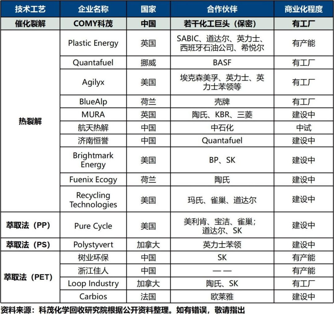 4.中國的化學(xué)回收企業(yè)已經(jīng)過10余年技術(shù)積累,擁有世界前沿的技術(shù),雖然短期內(nèi)仍受政策不完善的限制,但具備大規(guī)??焖侔l(fā)展的基礎(chǔ)。