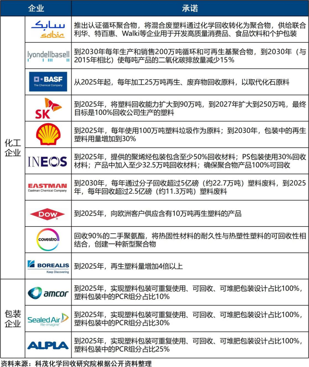 2.以BASF、SABIC、陶氏等化工巨頭為主要成員的40多家國際企業(yè)建立“終結(jié)塑料廢棄物聯(lián)盟(AEPW)”,承諾投入15億美元,幫助終結(jié)環(huán)境中的塑料垃圾,同時承諾為客戶提供PCR塑料。建立和擴充PCR塑料產(chǎn)能和產(chǎn)業(yè)鏈,成為近幾年化工巨頭的重要戰(zhàn)略。