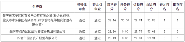 供應(yīng)商名稱:肇慶市高要區(qū)國(guó)有資產(chǎn)經(jīng)營(yíng)有限公司(聯(lián)合體成員:肇慶市水務(wù)集團(tuán)有限公司,深圳前海經(jīng)緯投資管理有限公司)