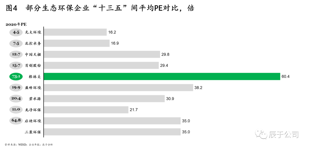 定好估值中樞。不同行業(yè)的估值中樞相差較大,而上市公司定性具有一定的靈活性,可從主營(yíng)業(yè)務(wù)、收入和利潤(rùn)、關(guān)鍵成功要素、資產(chǎn)分類等角度入手為公司調(diào)性確定合理定位。例如素有“節(jié)能環(huán)保老兵”之稱的格林美,主營(yíng)業(yè)務(wù)為廢棄資源回收利用和鈷鎳產(chǎn)品,考慮到金屬新材料所在領(lǐng)域近年較為火熱,估值中樞在較高水平,其積極轉(zhuǎn)型選取該行業(yè)作為估值中樞,在資本市場(chǎng)上可比估值公司為華友鈷業(yè)、寧德時(shí)代等估值較高的公司,因而相比于生態(tài)環(huán)保企業(yè),其估值處于領(lǐng)先位置(見圖4)。