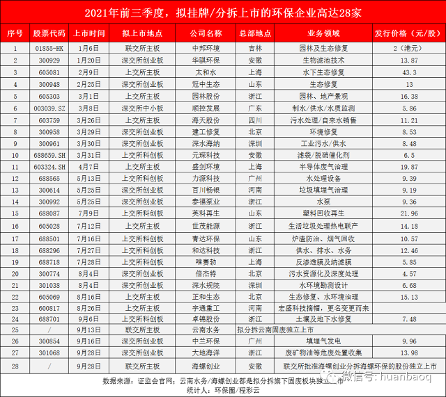 一、刷新歷年最高紀錄,前三季度環(huán)保企業(yè)上市已達28家