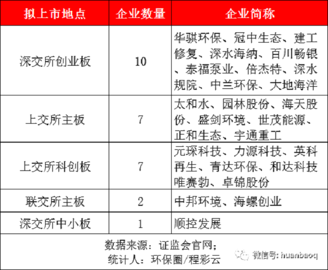 同時,我們還欣喜地看到,去年下半年陸續(xù)IPO過會的同興環(huán)保、華騏環(huán)保、百川暢銀環(huán)保、太和水、建工環(huán)境、深水海納、海天股份、元琛環(huán)保、盛劍環(huán)境、青達環(huán)保,中蘭環(huán)保等,這11家環(huán)保上市都在今年上半年成功掛牌上市,正式邁入資本市場。