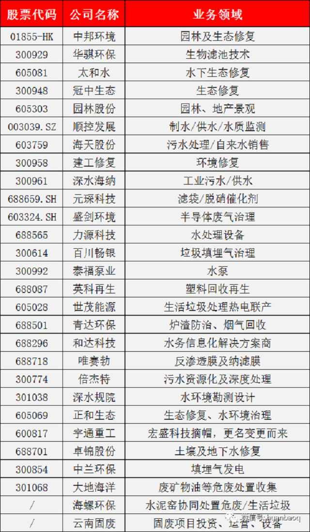 而事實上,這些環(huán)保企業(yè)無論是做膜、水泵、生物濾池、勘測設計、水質監(jiān)測的,還是做水務信息化、垃圾滲濾液、填埋氣治理、高鹽度工業(yè)廢水治理的,都屬于環(huán)保子領域的細分分支。