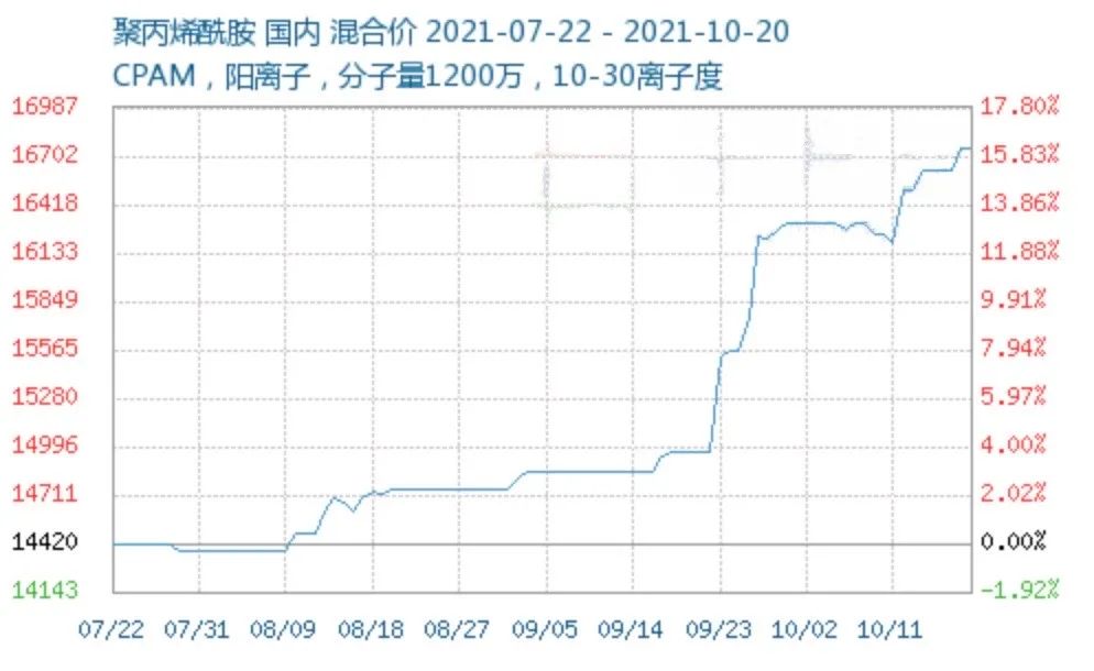 聚丙烯酰胺近期價格也出現(xiàn)了小幅上漲,其中,原料丙烯酸的持續(xù)上漲是主要影響因素,同時在"雙控"政策影響下,行業(yè)開工率持續(xù)降低,市場現(xiàn)貨丙烯酸供應(yīng)偏緊。