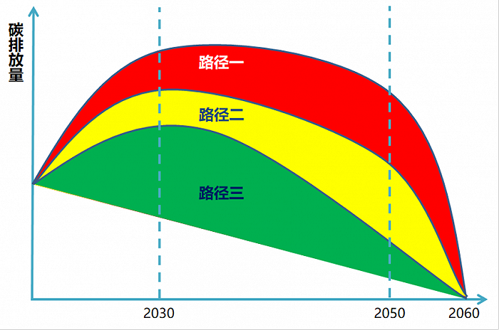 選項二:若美國釋放善意,前述的國際環(huán)境徹底改善,中國可以8-10%碳排放增長率,到2030年達峰,再緩慢下降,待2050年“碳中和”技術(shù)經(jīng)濟可行后,開始快速下降?!半p控”寬而執(zhí)行。
