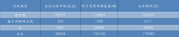 縣城的數(shù)據(jù)遠不如城市精彩,各項指標均有停滯的感覺,垃圾清運量2009年達到頂峰后,一直在0.67億噸左右徘徊,無害化處理場(廠)數(shù)量從2016到2020年五年僅增加12.18%,增速遠低于城市。各項指標中只有每萬人擁有公廁數(shù)領(lǐng)先城市,聊勝于無。村鎮(zhèn)部分僅統(tǒng)計了2020年數(shù)據(jù),包括建制鎮(zhèn)、鎮(zhèn)鄉(xiāng)級特殊區(qū)域和鄉(xiāng),見表4.表4 2020年村鎮(zhèn)市容環(huán)衛(wèi)總體情況