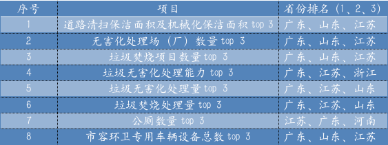 2、2020年環(huán)衛(wèi)設(shè)施投資大提速2020年市容環(huán)衛(wèi)和垃圾處理基礎(chǔ)設(shè)施固定資產(chǎn)投資1568.4億元,其中市容環(huán)衛(wèi)投資862.6億元,垃圾處理設(shè)施投資705.8億元,這兩個數(shù)字較2019年增長了54.75%和73.50%,目測是10年來增速最快的一年。環(huán)衛(wèi)真的是朝陽產(chǎn)業(yè)?。?/span>3、有的省在環(huán)衛(wèi)和垃圾處理固定資產(chǎn)投資為0上文提到固定資產(chǎn)投資,全國花了1568個億,但也有個別省份交了白卷,例如西藏,在這兩方面的投資均為0,而青海,雖然在市容環(huán)衛(wèi)設(shè)施方面花了1個多億,但垃圾處理基礎(chǔ)設(shè)施投資也是0.有0就有top 5,2020年,在市容環(huán)衛(wèi)設(shè)施方面投資最大的省份是:廣東(102.2億)、江蘇(93.5億)、浙江(61.4億)、河南(59.4億)、河北(57.1億),垃圾處理設(shè)施建設(shè)方面投資最大的省份是:廣東(97.3億)、江蘇(84.6億)、浙江(53.8億)、河北(49.7億)、河南(48.3億)。是的,你沒看錯,前三沒有變化,只有第四和第五位是河南、河北在移形換位。如果沒有特殊情況,未來幾年內(nèi),這五個省的環(huán)衛(wèi)和垃圾處理設(shè)施投資會繼續(xù)名列前茅,相關(guān)企業(yè)需要重視了!4、全國市容環(huán)衛(wèi)實力哪家強?表5 全國市容環(huán)衛(wèi)行業(yè)主要指標排名前三位省份