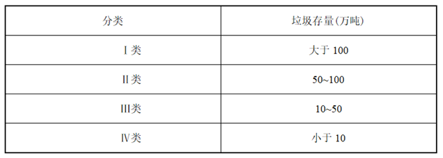 表1 存量生活垃圾治理工程建設(shè)規(guī)模分類