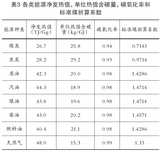 ,為二氧化碳排放量,Gg;Ei表示第i種能源消費量,kgce;NCVi為第i種能源凈發(fā)熱值,TJ/Gg;Cc為單位熱值碳含量,噸C/TJ;COF為碳氧化因子,該值為1,表示碳完全氧化;i=1,2,3…表示i種能源。