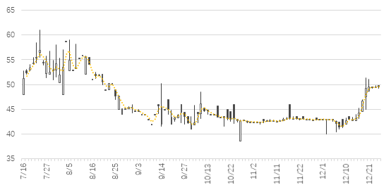 價(jià)格方面,截至12月24日,全國碳市場掛牌協(xié)議交易平均價(jià)格約45.9元/噸,最高價(jià)61.07元/噸,最低價(jià)38.5元/噸,絕大部分在40到60區(qū)間內(nèi)波動(dòng),總體呈現(xiàn)波動(dòng)降低的趨勢,12月以來隨著履約期臨近,碳價(jià)開始逐步升高,從12月初的約42元/噸回升到50元/噸左右,12月21日大宗交易也出現(xiàn)了46.3元/噸的較高交易價(jià)格。氣候投融資試點(diǎn)工作將著力探索支持全國碳市場長期平穩(wěn)運(yùn)行的相應(yīng)手段,推動(dòng)碳市場提供更穩(wěn)定的長期價(jià)格信號(hào),促進(jìn)減排活動(dòng)的實(shí)施效率,同時(shí)也挖掘碳配額的價(jià)值,為企業(yè)減排活動(dòng)提供更全面的支持。