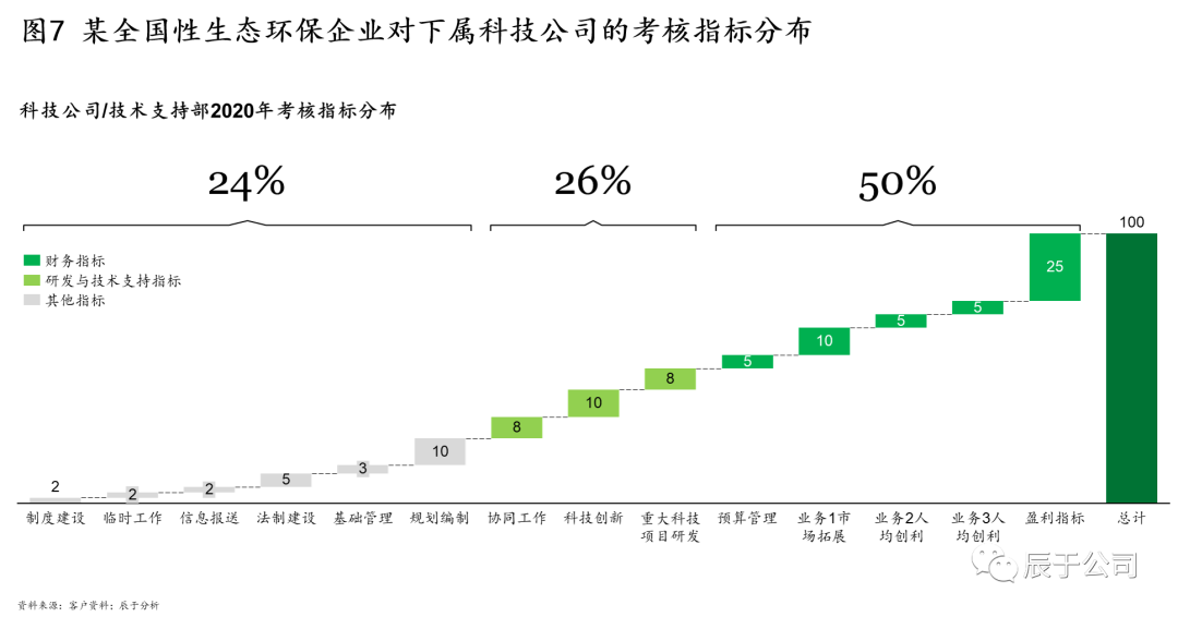 此外,對技術(shù)人員的考核也沒有根據(jù)這類人員的特點進(jìn)行差異化管理,沿用老套的項目子公司考核思路,很難調(diào)動他們的積極性與創(chuàng)造性,更有甚者,背負(fù)太多財務(wù)指標(biāo)也讓這些技術(shù)人員不得不將精力放在短期業(yè)績的追求上(見圖7,為保護(hù)隱私,對數(shù)據(jù)進(jìn)行了處理)。
