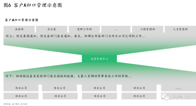 我們也看到,對(duì)項(xiàng)目公司的管理,一些企業(yè)簡(jiǎn)單的劃分為建設(shè)階段的項(xiàng)目公司由工程管理部門統(tǒng)籌管理、運(yùn)營(yíng)階段的則由運(yùn)營(yíng)管理部門統(tǒng)籌管理,對(duì)上“傳達(dá)集團(tuán)通知,傳達(dá)各部門各類通知、要求,協(xié)調(diào)總部各部門與項(xiàng)目公司之間的工作”,對(duì)下“協(xié)助報(bào)送各類其他部門要求填報(bào)的數(shù)據(jù),大量人員調(diào)動(dòng)等事務(wù)性工作的審核”等,原本簡(jiǎn)單的總部-項(xiàng)目公司兩級(jí)架構(gòu),演變成總部其他部門——總部(工程)運(yùn)營(yíng)管理部門——(工程期)運(yùn)營(yíng)期項(xiàng)目公司“漏斗型”三級(jí)架構(gòu) (見(jiàn)圖6)。