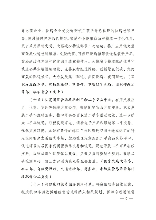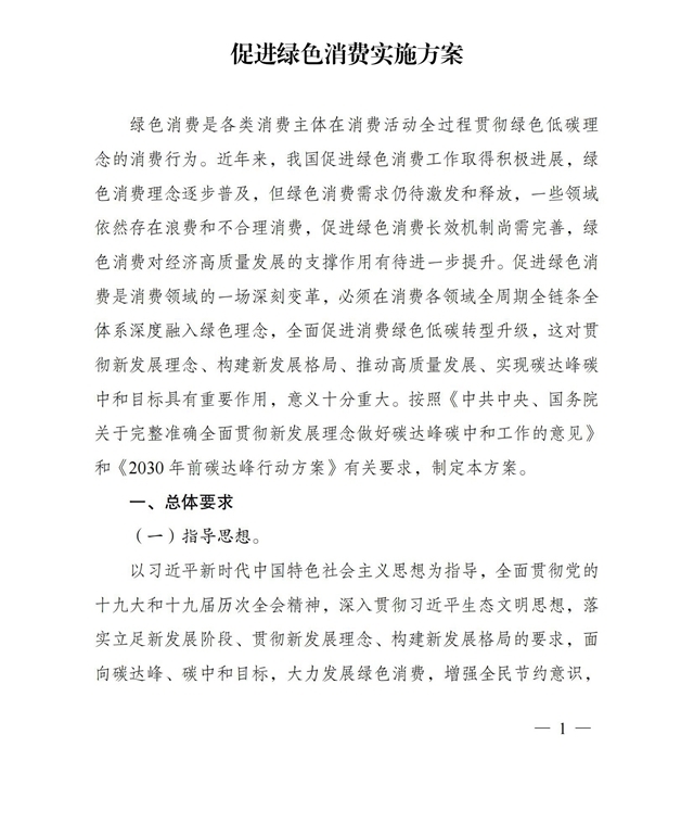 為深入貫徹落實(shí)《中共中央、國(guó)務(wù)院關(guān)于完整準(zhǔn)確全面貫徹新發(fā)展理念做好碳達(dá)峰碳中和工作的意見》和《2030年前碳達(dá)峰行動(dòng)方案》有關(guān)要求,根據(jù)碳達(dá)峰碳中和工作領(lǐng)導(dǎo)小組部署安排,國(guó)家發(fā)展改革委、工業(yè)和信息化部、住房和城鄉(xiāng)建設(shè)部、商務(wù)部、市場(chǎng)監(jiān)管總局、國(guó)管局、中直管理局會(huì)同有關(guān)部門研究制定了《促進(jìn)綠色消費(fèi)實(shí)施方案》。現(xiàn)印發(fā)給你們,請(qǐng)結(jié)合實(shí)際,認(rèn)真抓好貫徹落實(shí)。