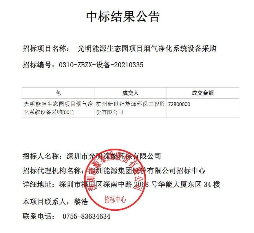 近日,中國大氣網(wǎng)從E20環(huán)境平臺(tái)標(biāo)訊采集系統(tǒng)E標(biāo)通獲悉,光明能源生態(tài)園項(xiàng)目煙氣凈化系統(tǒng)設(shè)備采購項(xiàng)目發(fā)布中標(biāo)公告,杭州新世紀(jì)能源環(huán)保工程股份有限公司中標(biāo)該項(xiàng)目,項(xiàng)目成交金額為7280萬元。