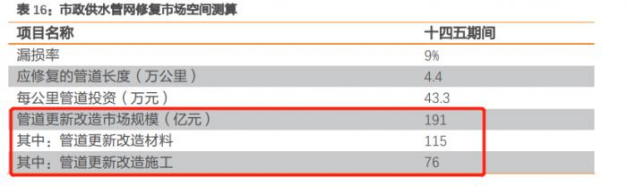 在地方層面,廣東、浙江、江蘇、福建、河南、山西等省份陸續(xù)在今年政府工作報(bào)告、擴(kuò)大有效投資的重大項(xiàng)目清單、部門專項(xiàng)文件中明確了城市管網(wǎng)建設(shè)和改造的規(guī)劃路線。比如,在去年遭遇洪澇災(zāi)害的河南,今年其政府工作報(bào)告提出,補(bǔ)齊城市防洪排澇短板。注重城市“里子工程”“避險(xiǎn)工程”建設(shè),構(gòu)建源頭減排、管網(wǎng)排放、蓄排并舉、超標(biāo)應(yīng)急的防澇工程體系。另一去年遭遇強(qiáng)降雨的省份山西,近日發(fā)布了《山西省城市地下管線管理辦法》。其中明確,新建、改建、擴(kuò)建的城市道路交付使用后未滿5年的,地下管線建設(shè)單位不得挖掘道路敷設(shè)地下管線。廣東在政府工作報(bào)告中提出,除了在老舊管道改造上發(fā)力,廣東還將加大管道的新建工程?!笆奈濉逼陂g,全省將新建互聯(lián)互通管道299.3公里。浙江在今年政府工作報(bào)告中也明確,實(shí)施一批重大城市建設(shè)改造項(xiàng)目,積極推進(jìn)燃?xì)夤艿栏?、城市?nèi)澇治理等,提升城市功能。浙江省發(fā)改委表示,要加強(qiáng)防洪排澇工程等專項(xiàng)項(xiàng)目?jī)?chǔ)備和前期工作,積極爭(zhēng)取中央預(yù)算內(nèi)投資,支持重大項(xiàng)目建設(shè)。目前,該省“擬申請(qǐng)排水設(shè)施建設(shè)2022年中央預(yù)算內(nèi)投資項(xiàng)目”已公示。在給排水管網(wǎng)加速啟動(dòng)建設(shè)、更新的情況下,帶動(dòng)了相關(guān)管道行業(yè)的景氣度也大幅提升。以城市給排水系統(tǒng)為例,城市給排水系統(tǒng)主要用的是鋼鐵管(以球墨鑄管為主,常用于全口徑的供水管道建設(shè))和塑料管(塑料管常用于建筑內(nèi)的給排水)。其中,球墨鑄管的占比大約在50%以上。截至2022年1月14日,離心球磨鑄管與離心球磨鑄鐵價(jià)格之差接近2800元/噸,創(chuàng)下2011年以來(lái)的最高水平。這一價(jià)差表明離心球磨鑄管的需求較為旺盛。管道制造知名企業(yè),包括中國(guó)聯(lián)塑、新興鑄管、凱鑫管道、華生管道、亞大集團(tuán)等,都早早布局相關(guān)環(huán)保業(yè)務(wù)。以中國(guó)聯(lián)塑為例,從2015年開(kāi)始便積極布局環(huán)保領(lǐng)域,目前已經(jīng)完成能夠開(kāi)發(fā)和提供綜合管廊、海綿城市、智能管網(wǎng)等所需的全系列產(chǎn)品和相應(yīng)的一體化解決方案及服務(wù)。新興鑄管:除了傳統(tǒng)鑄造,新興鑄管在21年聯(lián)合華為公司、鯤鵬聯(lián)合創(chuàng)新中心簽署三方協(xié)議,共同開(kāi)發(fā)智慧水務(wù)管網(wǎng)系統(tǒng),推進(jìn)國(guó)家級(jí)智慧水務(wù)管道團(tuán)體標(biāo)準(zhǔn)體系、國(guó)家級(jí)水務(wù)工業(yè)聯(lián)網(wǎng)平臺(tái)和水?dāng)?shù)據(jù)云平臺(tái)建設(shè)。凱鑫管道:在企業(yè)外貿(mào)發(fā)展戰(zhàn)略的指導(dǎo)下,凱鑫緊隨市場(chǎng)潮流,借助“互聯(lián)網(wǎng)+”,全面提升生態(tài)環(huán)境治理能力和治理體系現(xiàn)代化。加強(qiáng)智慧環(huán)境建設(shè),加強(qiáng)前沿技術(shù)在環(huán)境領(lǐng)域的應(yīng)用。 細(xì)分領(lǐng)域催生新機(jī)遇,探測(cè)與修復(fù)成為補(bǔ)齊管網(wǎng)短板關(guān)鍵