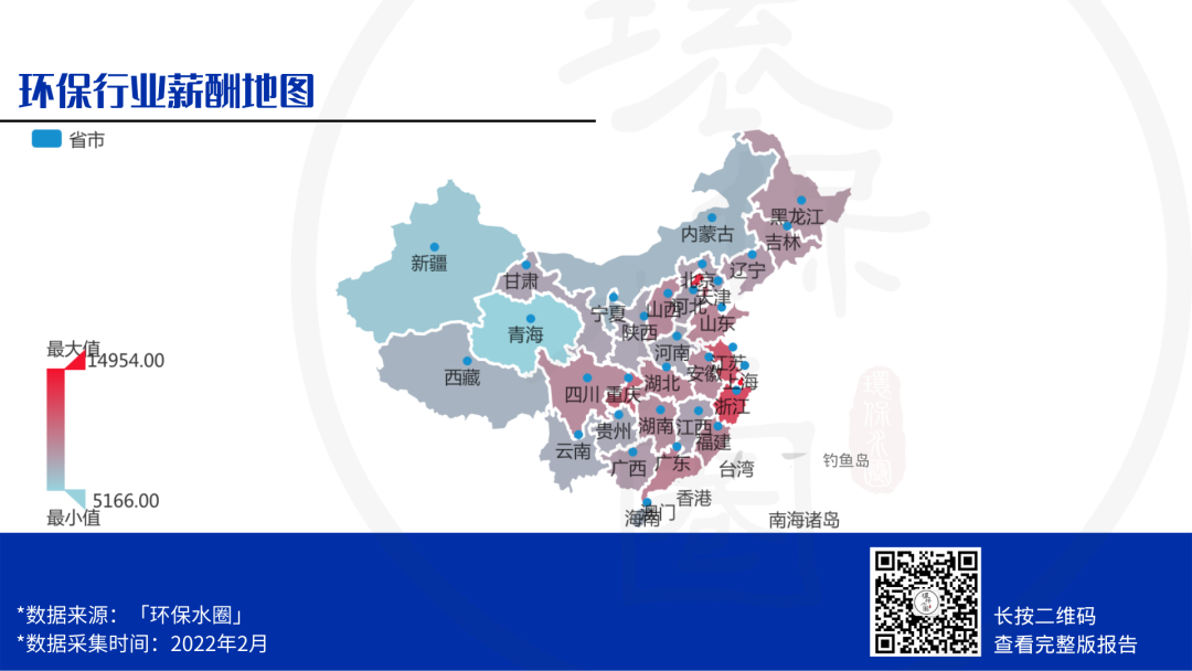 從全國環(huán)保行業(yè)平均薪酬來看,上海、北京、浙江、江蘇、重慶、天津、廣東位居前六。這一方面源于這幾個(gè)省市自身發(fā)展較好,另一方面表示這6大省市虹吸能力強(qiáng),集中了眾多頭部公司和高層次環(huán)保人才。